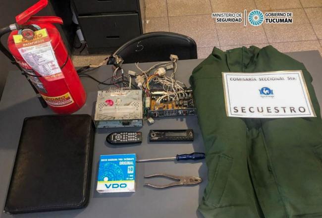 De manera que, la Policía inició una persecución que culminó a los pocos metros, logrando atrapar al delincuente que tenía en su poder un estéreo, un matafuego, un amplificador, dos camperas, un control remoto y herramientas, objetos que fueron secuestrados.