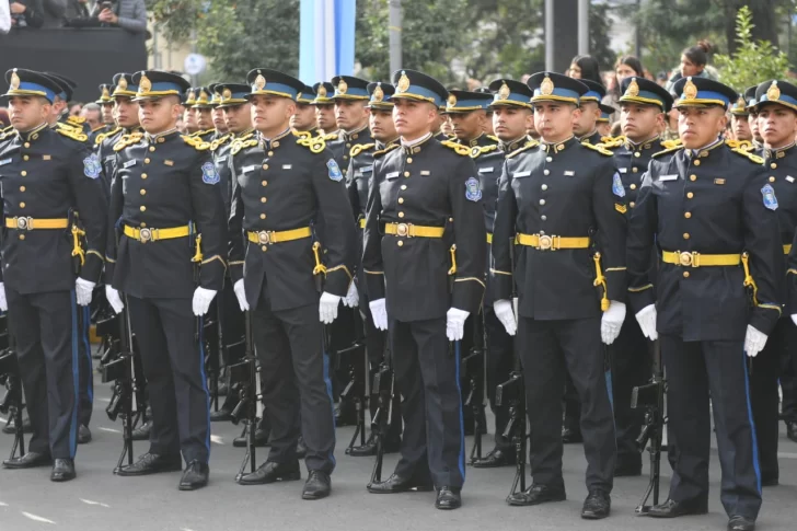 Allí, el Primer Mandatario Provincial tomó la Promesa de Lealtad a la Bandera a 2.500 alumnos de cuarto grado de establecimientos educativos de la capital y del interior de la provincia y a 80 cadetes del Instituto de Enseñanza Superior de Policía General José Francisco de San Martín.