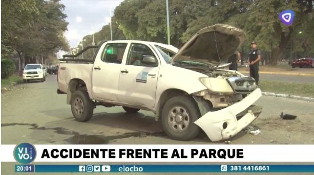 El accidente sucedido en Avenida Gobernador del Campo al 500, en las cercanías del Parque 9 de Julio, tiene como protagonistas a un camión de la Municipalidad de San Miguel de Tucumán y una camioneta. Autoridades que acudieron a los pocos minutos de que sucediera el hecho informan que el vehículo perteneciente al municipio se encontraba estacionado en el carríl rapido cuando fue impactado por el rodado de una empresa privada que circulaba en el mismo sentido.