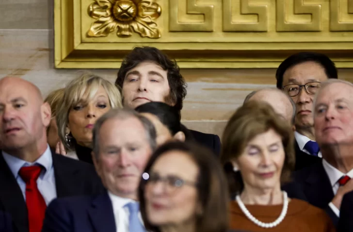 Milei y la secretaria general fueron ubicados en una fila de la Rotonda del Capitolio que estaba justo detrás de las sillas asignadas a los expresidentes George Bush -que estaba con su esposa Laura Bush-, Bill Clinton que tenía a su lado a Hillary Clinton, y Barack Obama, que concurrió sin Michelle.