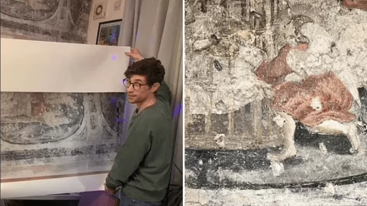 Descubrió un mural de 400 años de antigüedad mientras renovaba la cocina