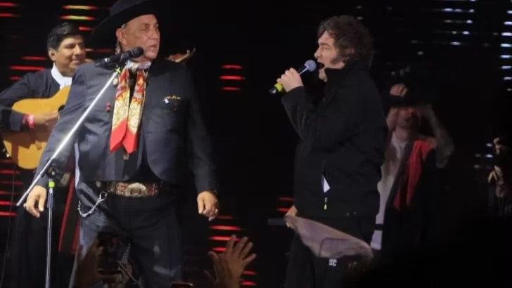 Ante la invitación de Palavecino para cantarlo a dúo, el presidente intentó excusarse inicialmente alegando que “no le da el piné” y que él es un “amateur” al lado del folclorista. Sin embargo, tras la insistencia del músico -quien le recordó su pasado rockero y cantando temas de Leonardo Favio-, Milei subió al escenario.