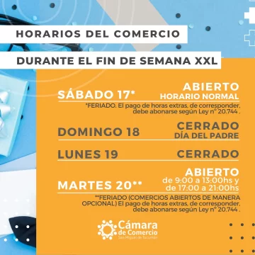 En Argentina, junio tiene su momento de celebración para las familias, ya que se festeja el Día del Padre el tercer domingo de este mes. Es por eso que los tucumanos aprovecharán el fin de semana extra largo para realizar las compras durante este viernes y sábado, días en los que el comercio atenderá en horario normal, de 9 a 13 y de 17 a 21 horas.