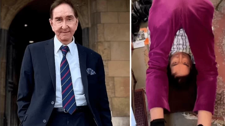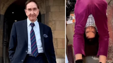 Luego gira hacia la izquierda y hacia la derecha antes de mantener los pies juntos y abrir las piernas, lo que también puede ayudar a los flexores de la cadera. El hombre luego se arrodilla en el piso, pone sus manos sobre su cabeza y se inclina hacia atrás, mirando hacia el cielo, antes de ser filmado haciendo abdominales. Afirmó que si hace ejercicio a diario, no tendrán “problemas de espalda en la vejez”.