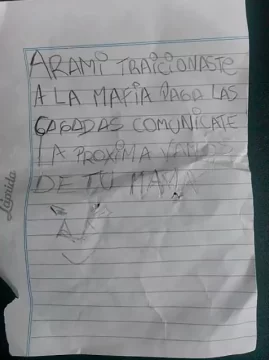 “Traicionaste a la mafia, pagá las cagadas, comunicate. La próxima vamos a lo de tu mamá”, decía la nota que le dejaron por debajo de la puerta y que estaba destinada para un sujeto llamado “Arami”.