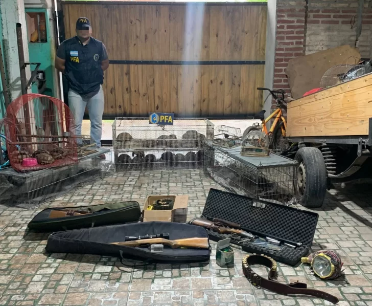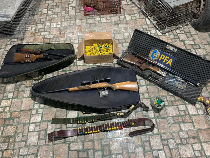 Asimismo se secuestraron armas largas y cortas, así como gran cantidad de elementos de arte para la caza, pieles de felinos y taxidermia todo ello producto también de la caza furtiva.