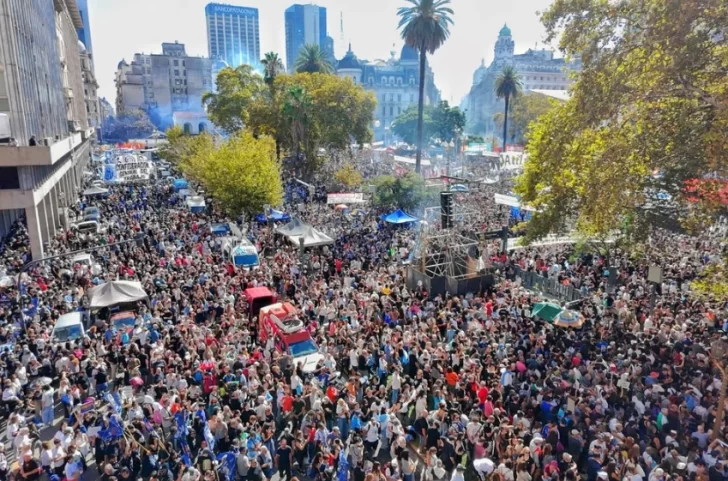 La frase despertó gritos de los manifestantes, con “Milei basura vos sos la dictadura” como consigna preponderante.